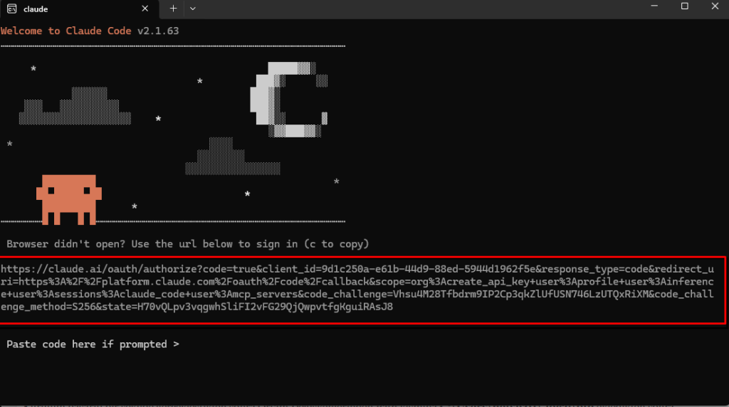 Git ile claude yi çalıştırıyoruz. Doğrulama yapıyoruz eğer doğrulama yapmaz ise linki kopyalayıp doğrulama yapabiliriz.